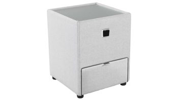 Die hochwertige STAUD Luxus-Nachtkommode Smartliving kombiniert Sonoma eichefarbene Kunststoffoberflächen mit alpinweißen Glasfronten und chromfarbenen Griffleisten zu einem stimmigen Ganzen. Durch die allgemein sehr helle Gestaltung präsentiert sich die Kommode besonders elegant und freundlich-einladend. Darüber hinaus sind die Kunststoffoberflächen angenehm pflegeleicht.