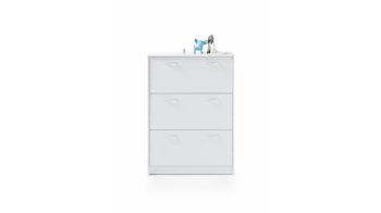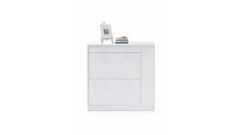 Der Schuhkipper Optimus ist enorm stilvoll designt und ausgesprochen praktisch. Mit den strahlend weißen Kunststoffoberflächen bringt der Schuhschrank moderne Eleganz in den Raum, in dem Sie ihn platzieren. Akzente setzen die alufarbenen Griffe - sie heben sich einerseits ab, verbinden sich auf der anderen Seite aber auch perfekt mit dem Weiß des attraktiv gestalteten Korpus.