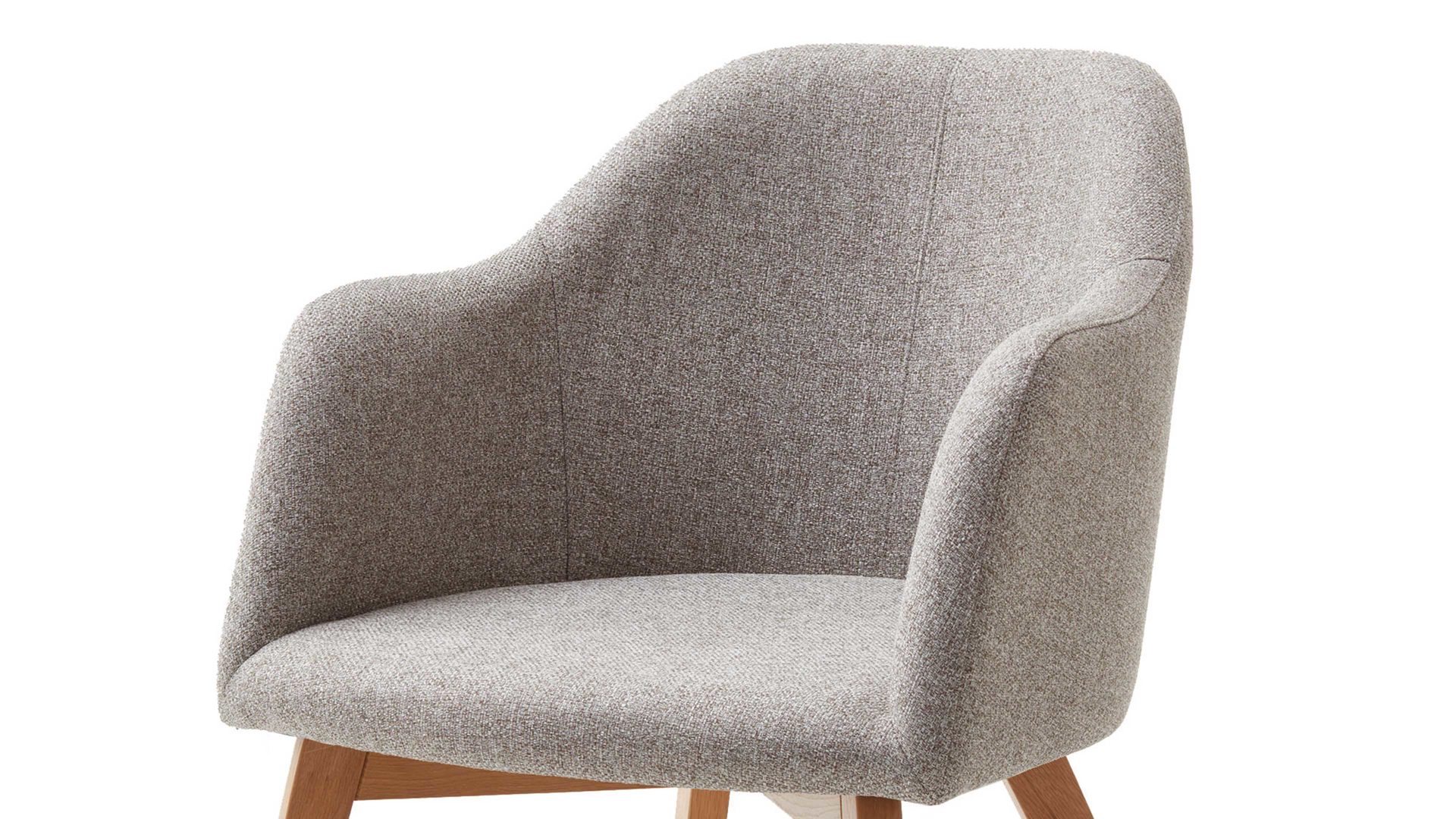 Der Armlehnstuhl Charly präsentiert sich modern und stilvoll designt. Darüber hinaus weiß er in puncto Komfort zu überzeugen. Lackierte Eichenholzfüße bilden die robuste Basis. Das natürliche Material sorgt einerseits für die nötige Stabilität und bringt andererseits ein warmes, einladendes Flair in den Raum. Attraktiv abgerundet wird der Vierfußstuhl durch den schlammfarbenen Webstoffbezug. Die trendige Farbe wirkt überaus elegant und harmoniert vorzüglich mit den Holzfüßen. Einen feinen Akzent setzt die Steppnaht im Rücken des Schalensitzes.