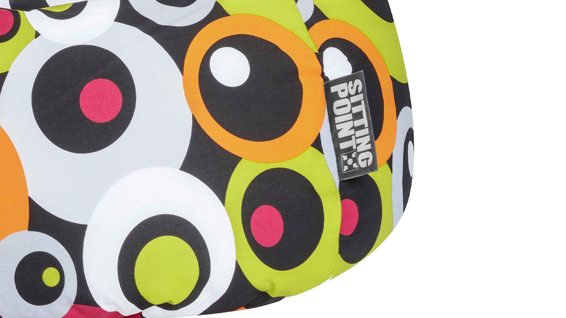 Der SITTING POINT Sitzsack XL fällt durch seine fröhliche und farbenfrohe Gestalt sofort auf. Das bunte Muster ist im Retrolook gehalten und mit farbigen Kreisen versehen. Durch die Füllung aus Polystorol genießen Sie einen hohen Sitzkomfort und lehnen sich entspannt zurück. Dieses Sitzmöbel ist in mehreren Farbvarianten erhältlich.
