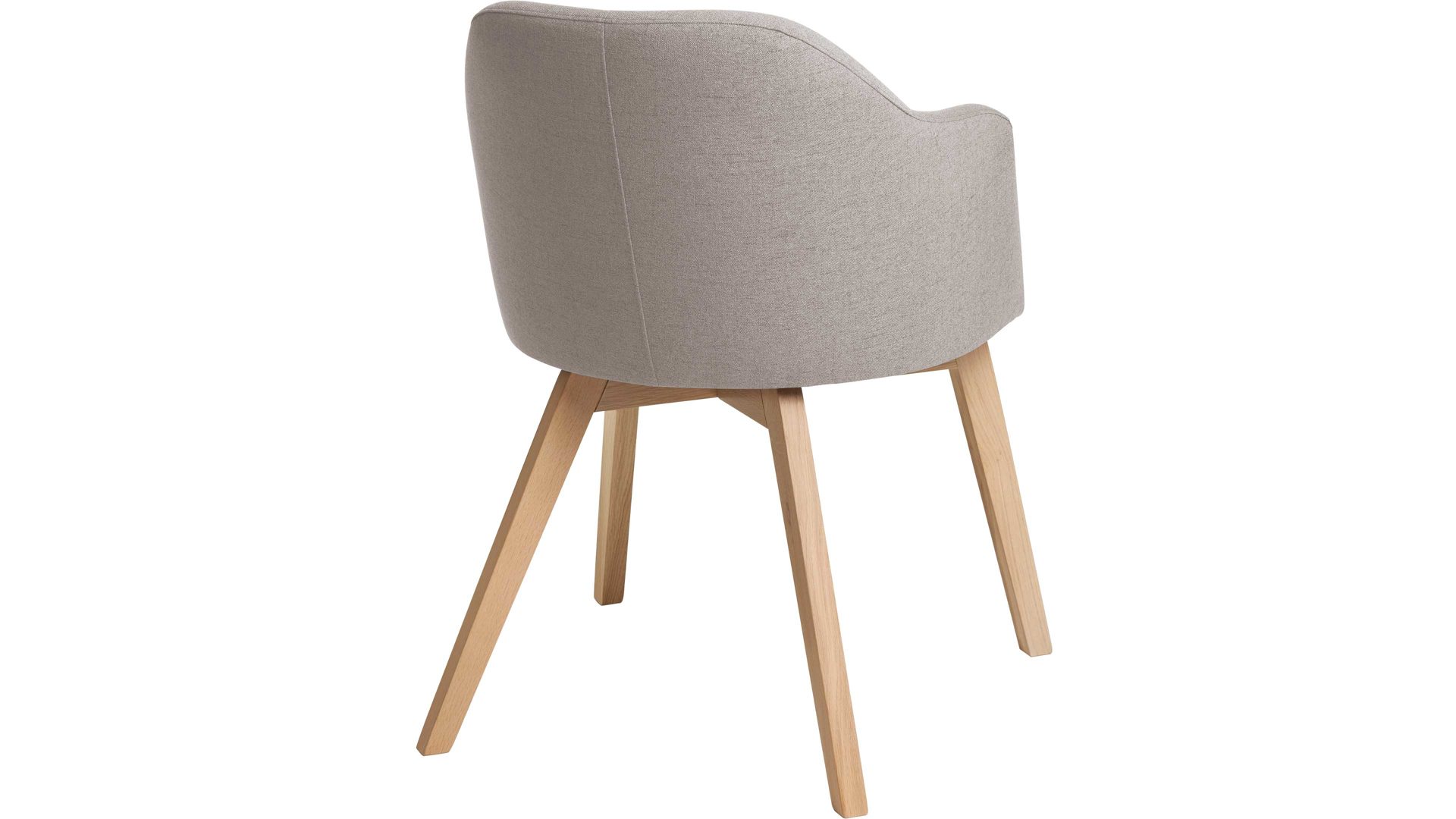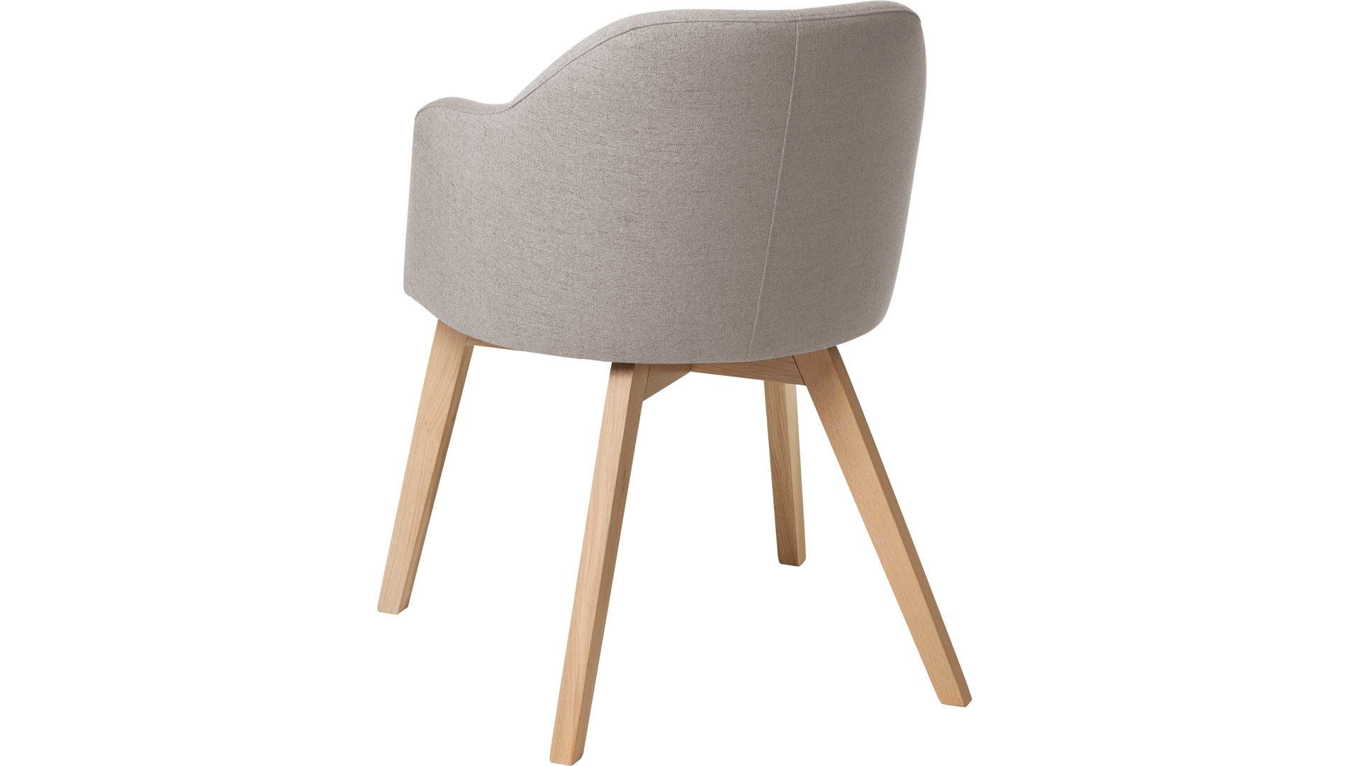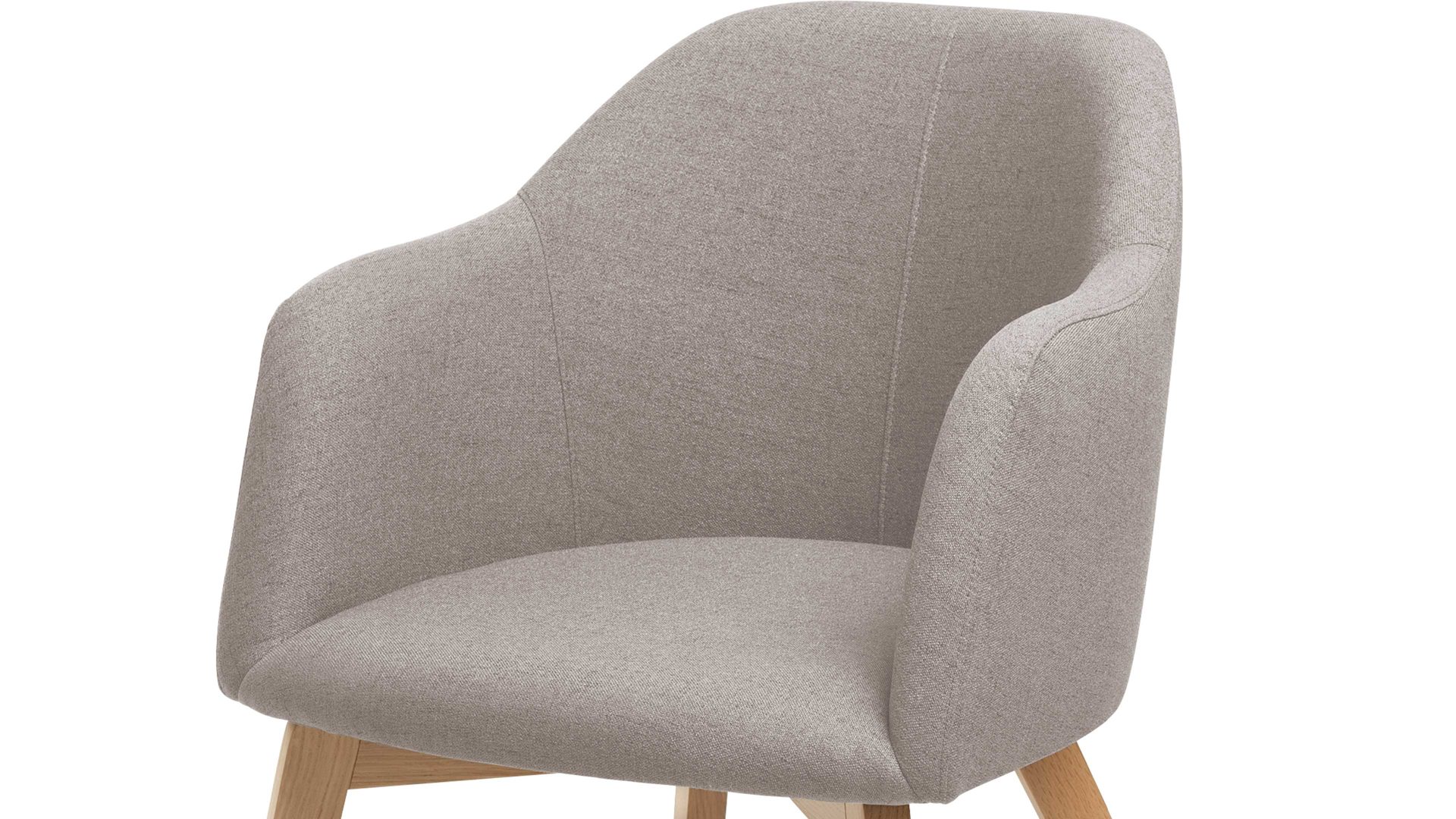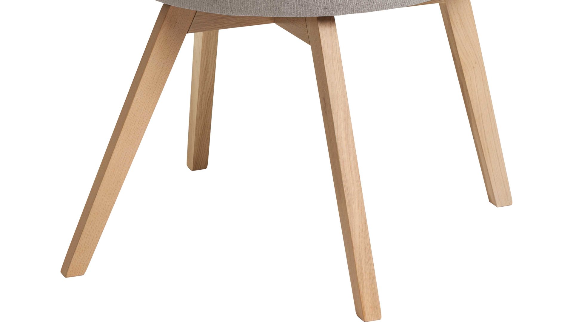 Lackierte Eichenholzfüße bilden die robuste Basis. Das natürliche Material sorgt einerseits für die nötige Stabilität und bringt andererseits ein warmes, einladendes Flair in den Raum. Attraktiv abgerundet wird der Vierfußstuhl durch den taupefarbenen Webstoffbezug. Die sanfte Trendfarbe wirkt überaus elegant und harmoniert vorzüglich mit den Holzfüßen. Einen feinen Akzent setzt die Steppnaht im Rücken des Schalensitzes.