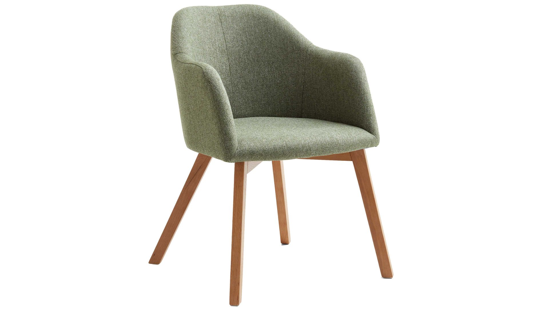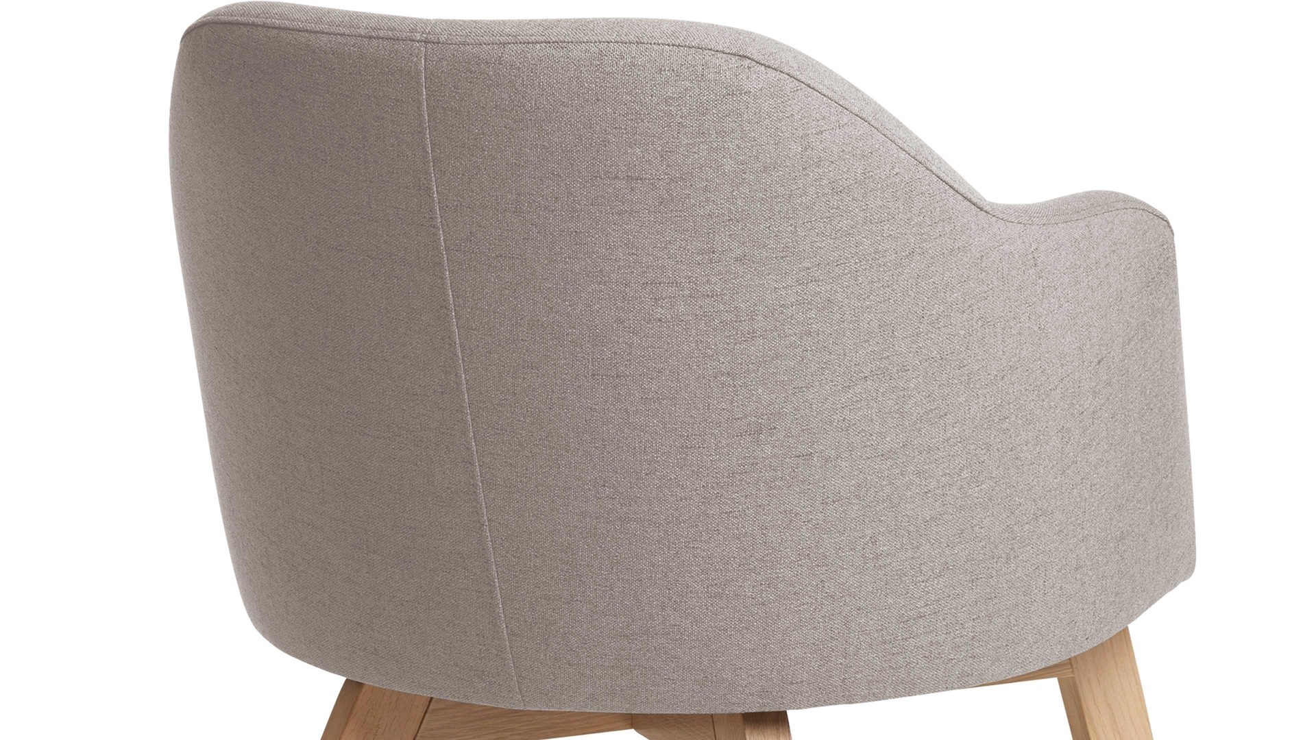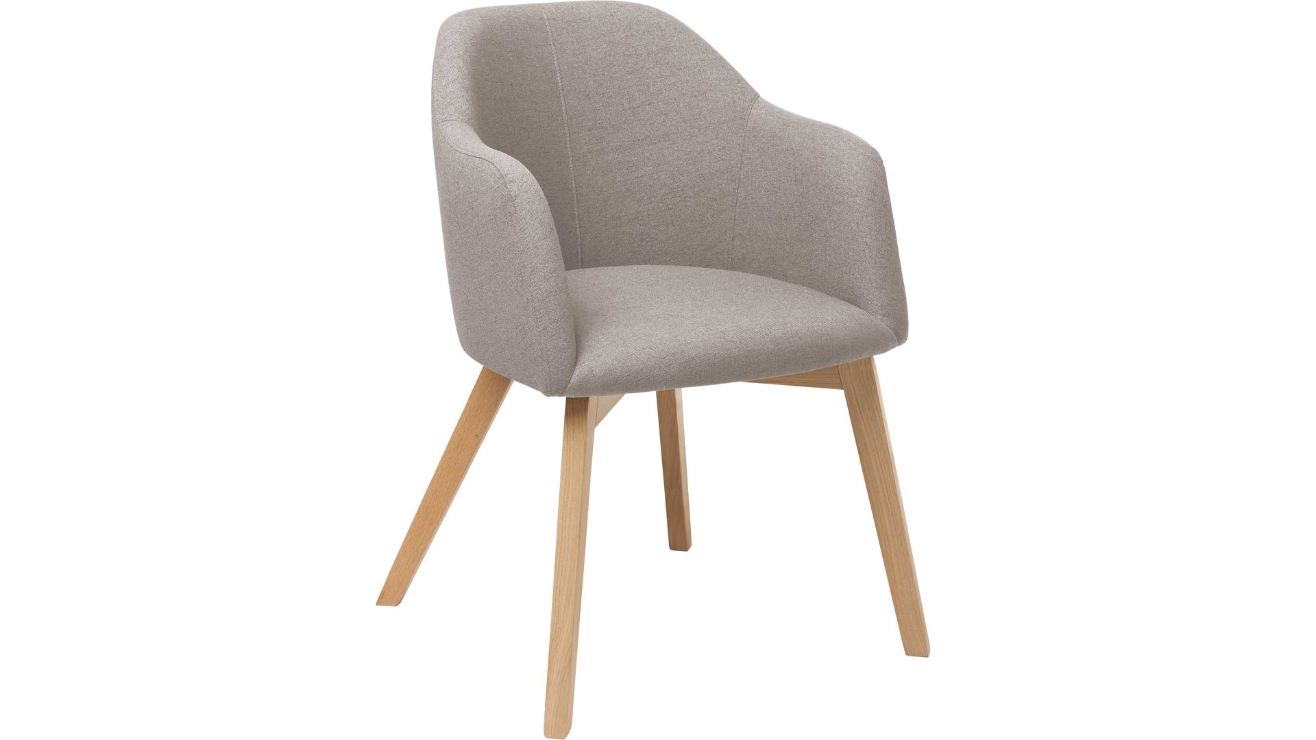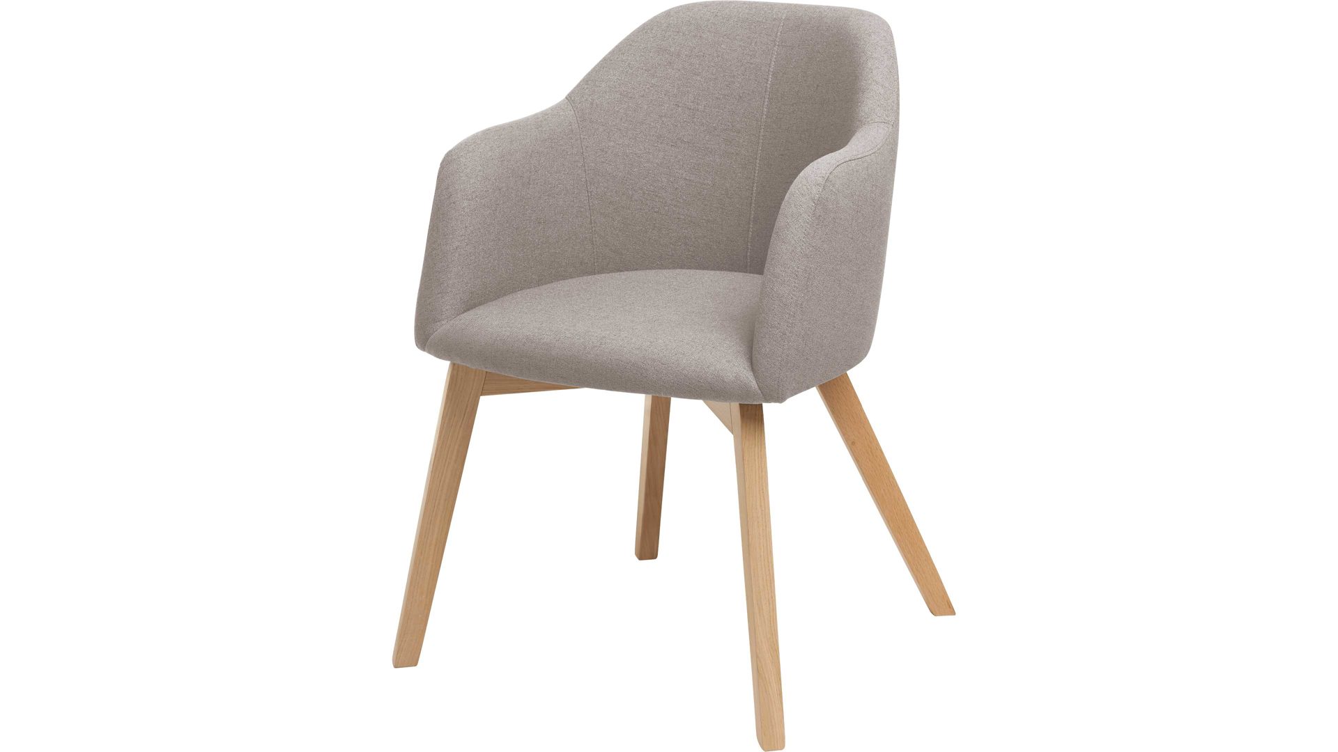Lackierte Eichenholzfüße bilden die robuste Basis. Das natürliche Material sorgt einerseits für die nötige Stabilität und bringt andererseits ein warmes, einladendes Flair in den Raum. Attraktiv abgerundet wird der Vierfußstuhl durch den taupefarbenen Webstoffbezug. Die sanfte Trendfarbe wirkt überaus elegant und harmoniert vorzüglich mit den Holzfüßen. Einen feinen Akzent setzt die Steppnaht im Rücken des Schalensitzes.