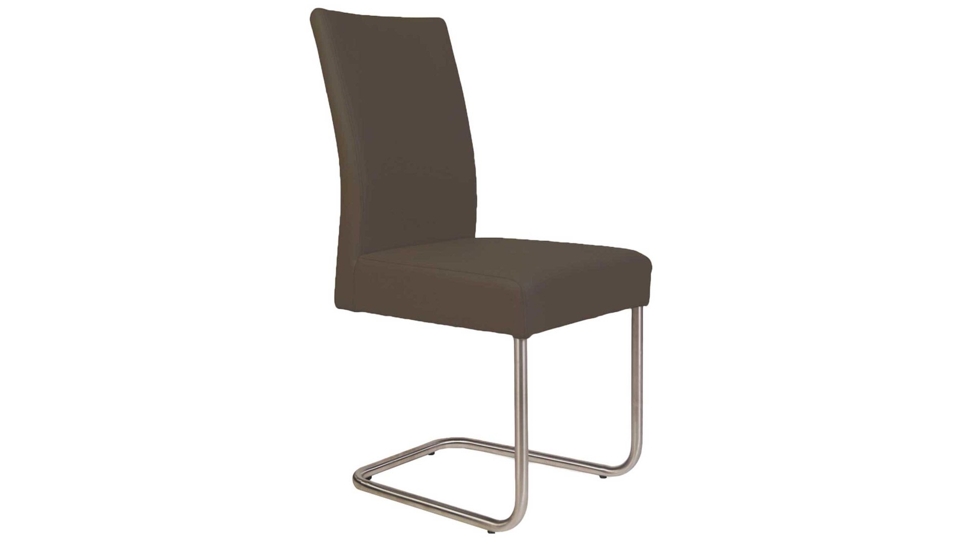 Mit dem dunkelbraunen Kunstlederbezug strahlt er Wärme und Eleganz aus - Eigenschaften, die jeden Raum und Stil aufwerten. Das mattschwarze Rundrohrgestell sorgt durch die klassische Farbgebung für eine harmonische Abrundung und gewährleistet dank des robusten Materials die beim Sitzen und lockeren Schwingen erforderliche Stabilität.