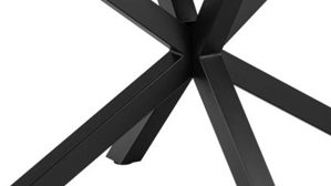 Sowohl das Gestell als auch die Tischplatte weisen eine raue Oberfläche auf. Dieses Merkmal unterstreicht den trendigen, modern interpretierten Industrie-Look des robusten Esszimmertisches. Mit seinem eindrucksvollen Design setzt er einen attraktiven Akzent und zieht die Blicke auf sich.
