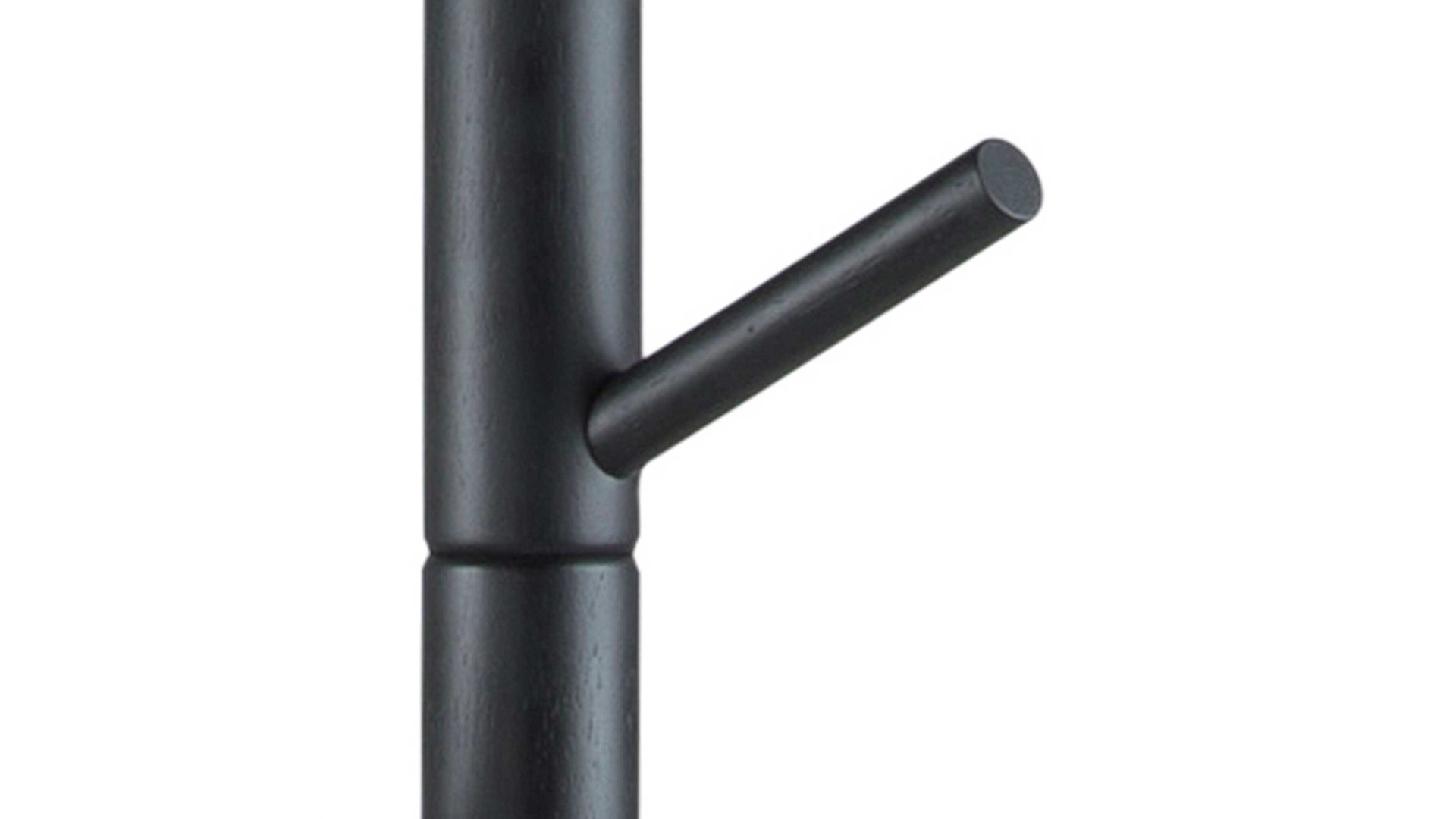 Die funktionale Garderobe mit Kleiderhaken überzeugt mit einer Größe von ca. 52 x 177 x 44 cm (BxHxT), wodurch sie hervorragend auch in kleine Ecken passt, die Sie auf diese Weise optimal ausnutzen können. Freuen Sie sich mit dem Kleiderständer aus schwarz lackiertem Holz auf einen funktionalen Alltagshelfer, der zudem mit seiner geradlinigen Optik überrascht. Das Dielenmöbel ist auch in Weiß und Rubberwood erhältlich.
