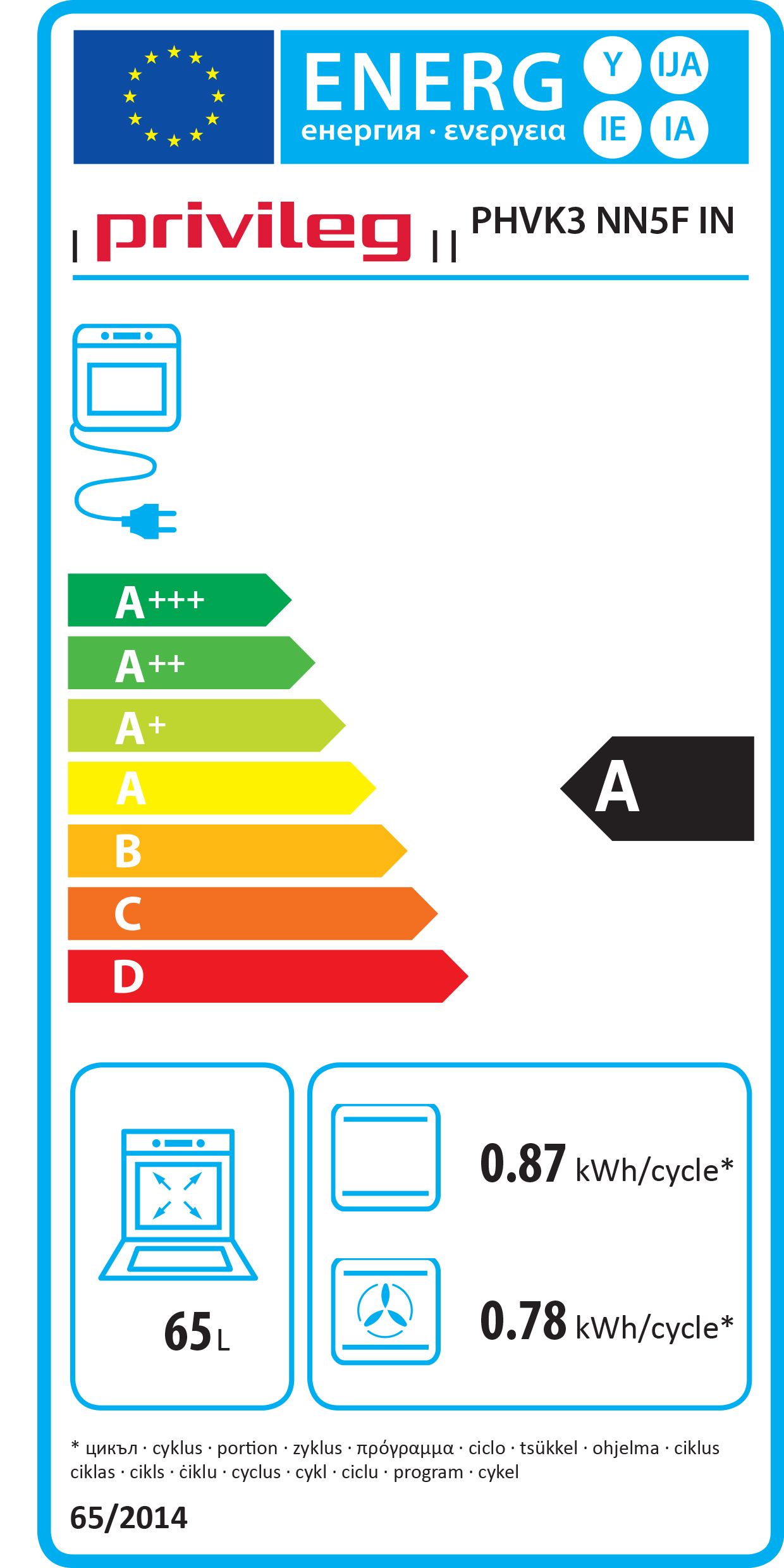 Energieeffizienz Backofen: A A+++ D A