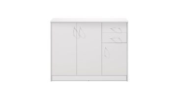 weiße Kunststoffoberflächen – drei Türen, zwei Schubladen